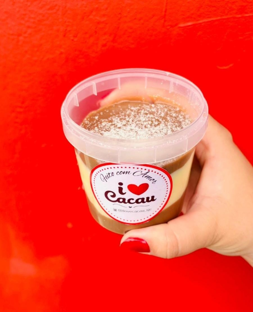 🍫 Pavê Tradicional — equilíbrio perfeito entre creme, biscoito e chocolate. Um clássico que conquista paladares. 💛 Obs: 220ml